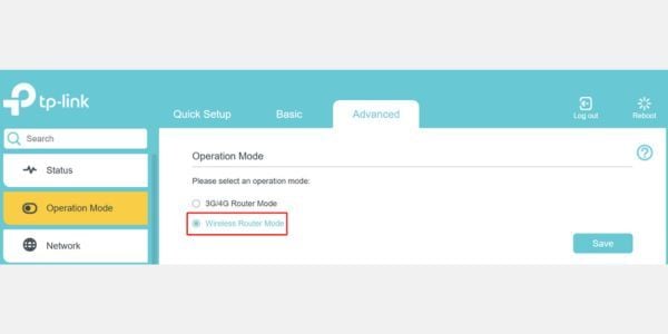 - Chọn Chế độ Router không dây (Wireless Router Mode) và nhấn Lưu (Save).