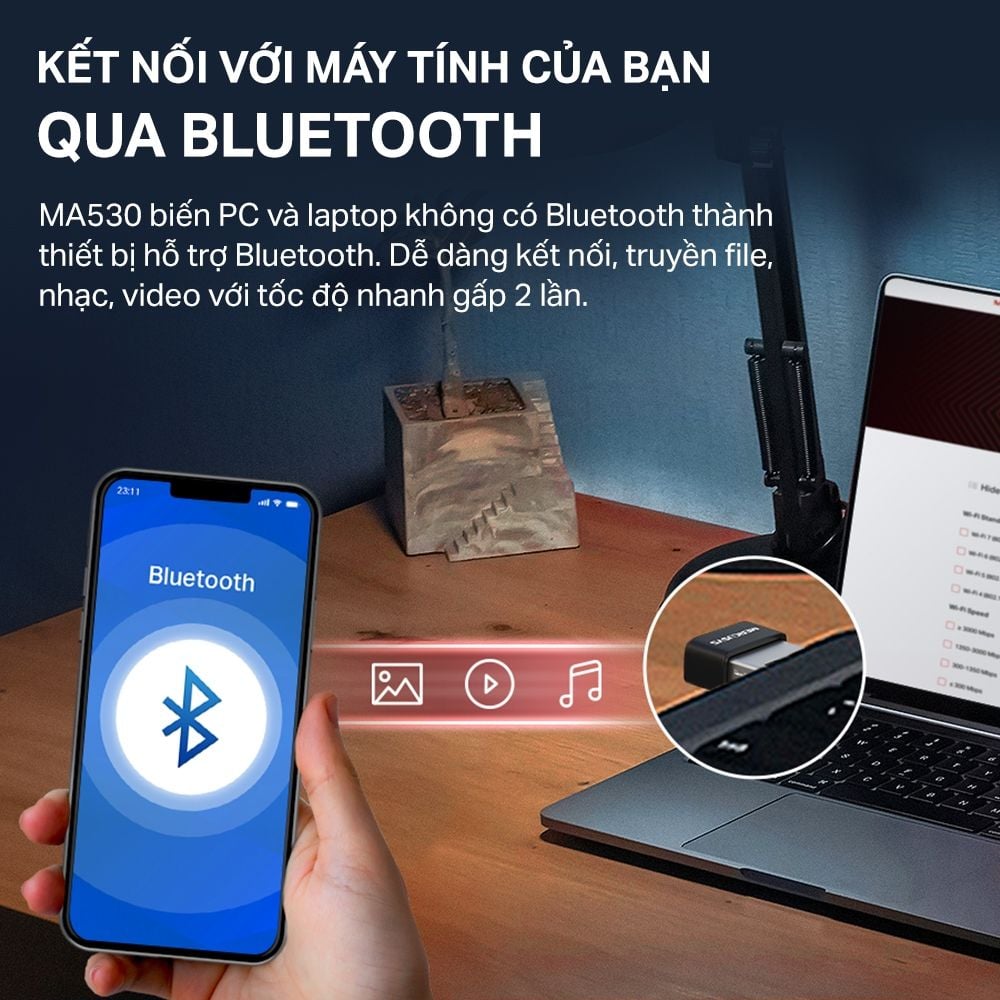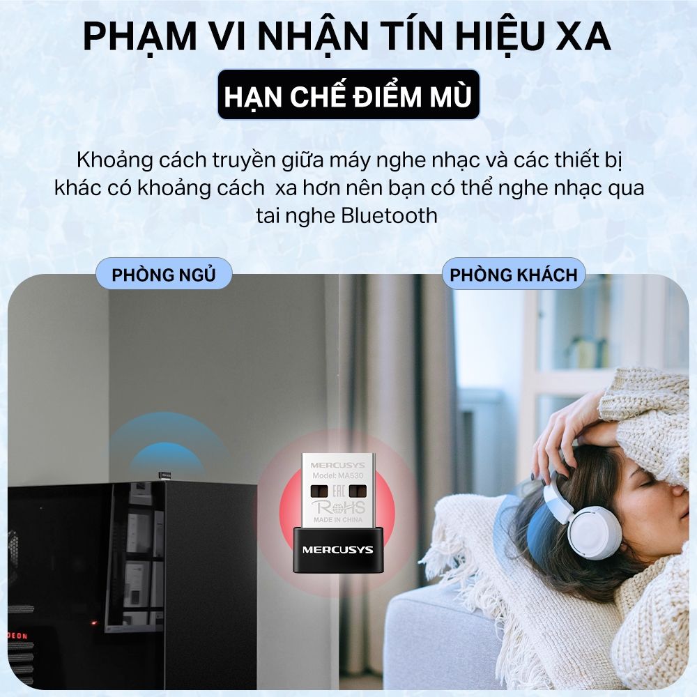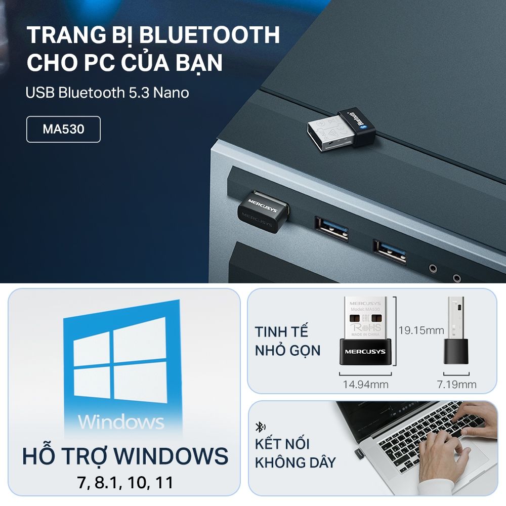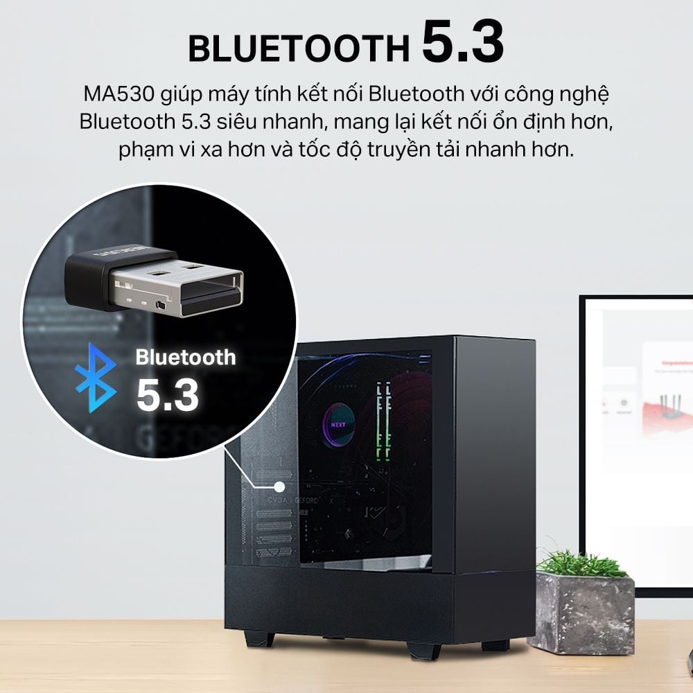 Bộ Chuyển Đổi Bluetooth USB Nano Mercusys MA530 Chuẩn Bluetooth 5.3 | USB nhỏ gọn, kết nối ổn định