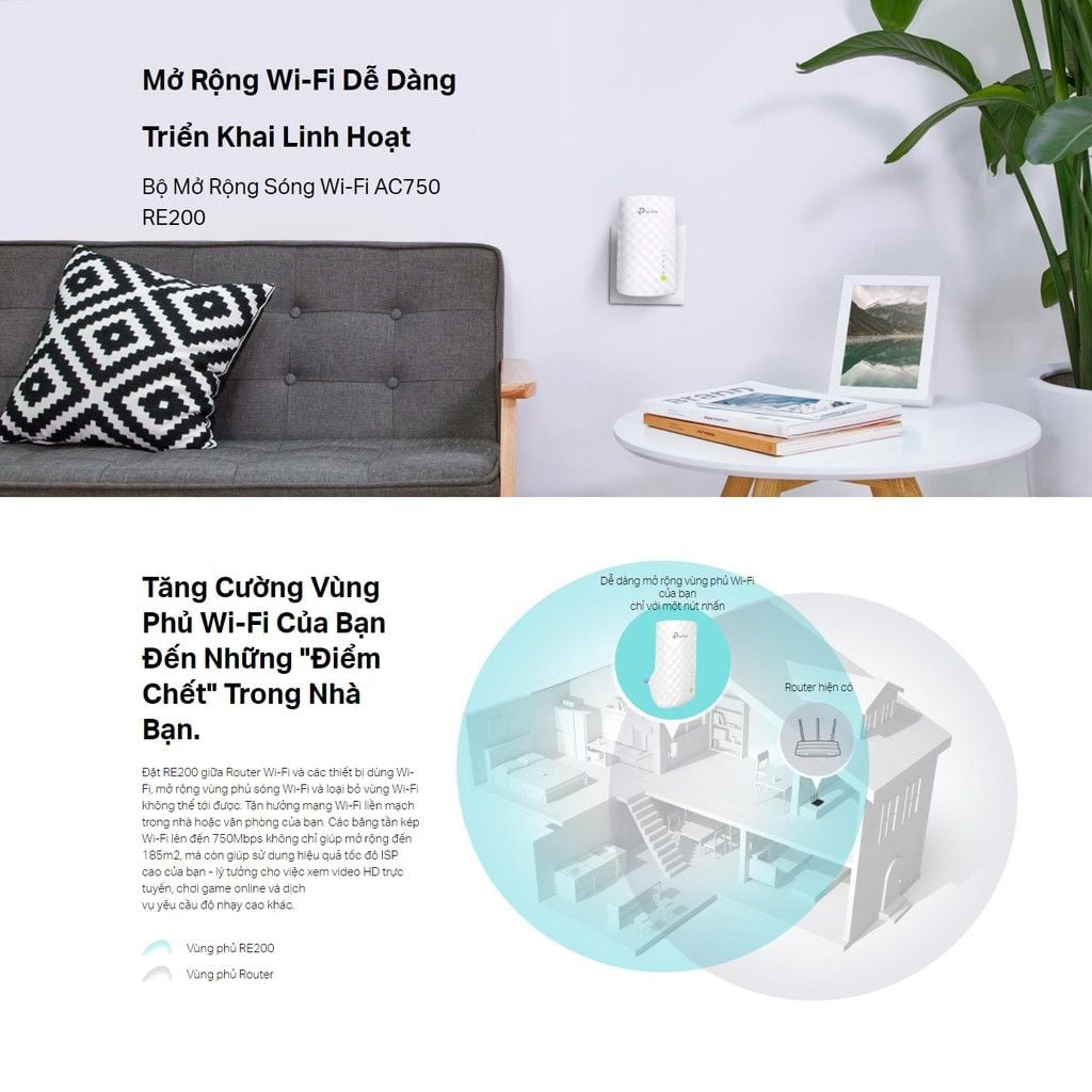 ☑ Bộ mở rộng sóng Wi-Fi RE200 AC750