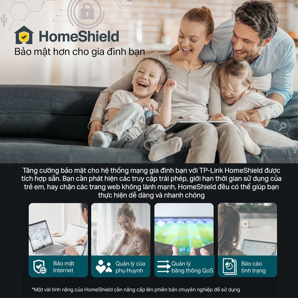 - Bảo Mật Toàn Diện: Mã hóa WPA3 và TP-Link HomeCareTM cung cấp các tính năng được cá nhân hóa, bao gồm