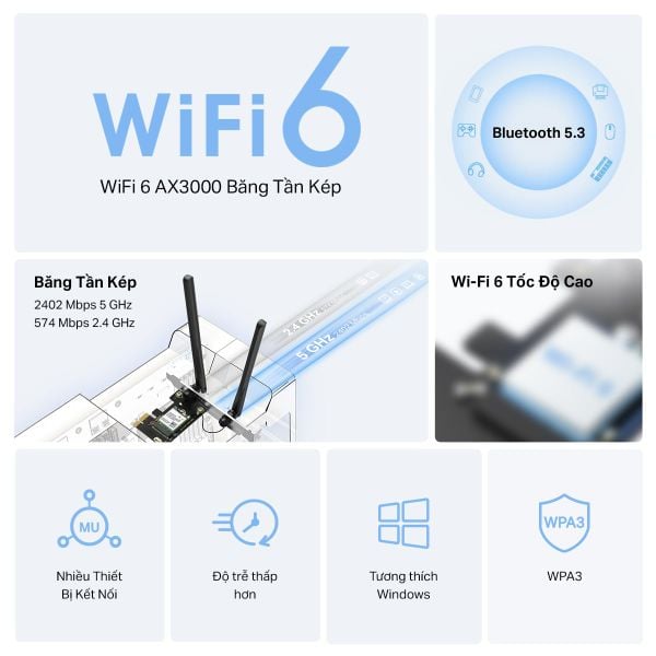 Card Mạng Mercusys MA80XE | Wi-Fi 6 Bluetooth 5.3