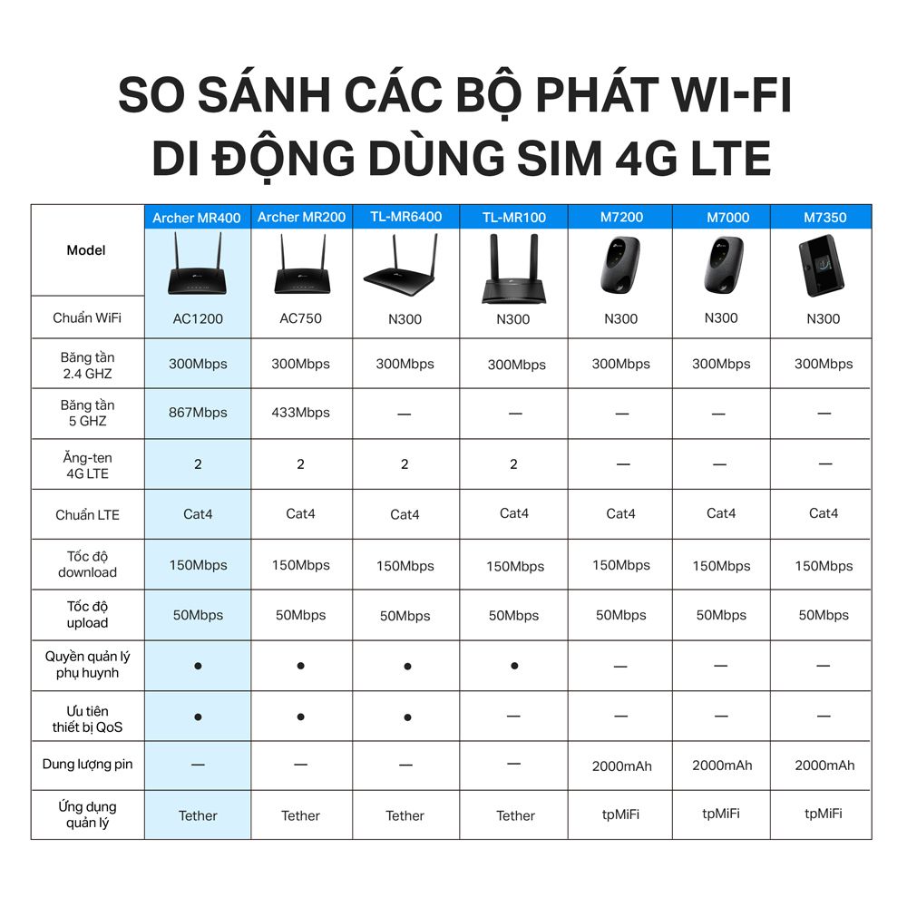 🏷️ BỘ PHÁT WIFI DI ĐỘNG 4G TP-LINK ARCHER MR400 / MR600 BĂNG TẦN KÉP AC1200
