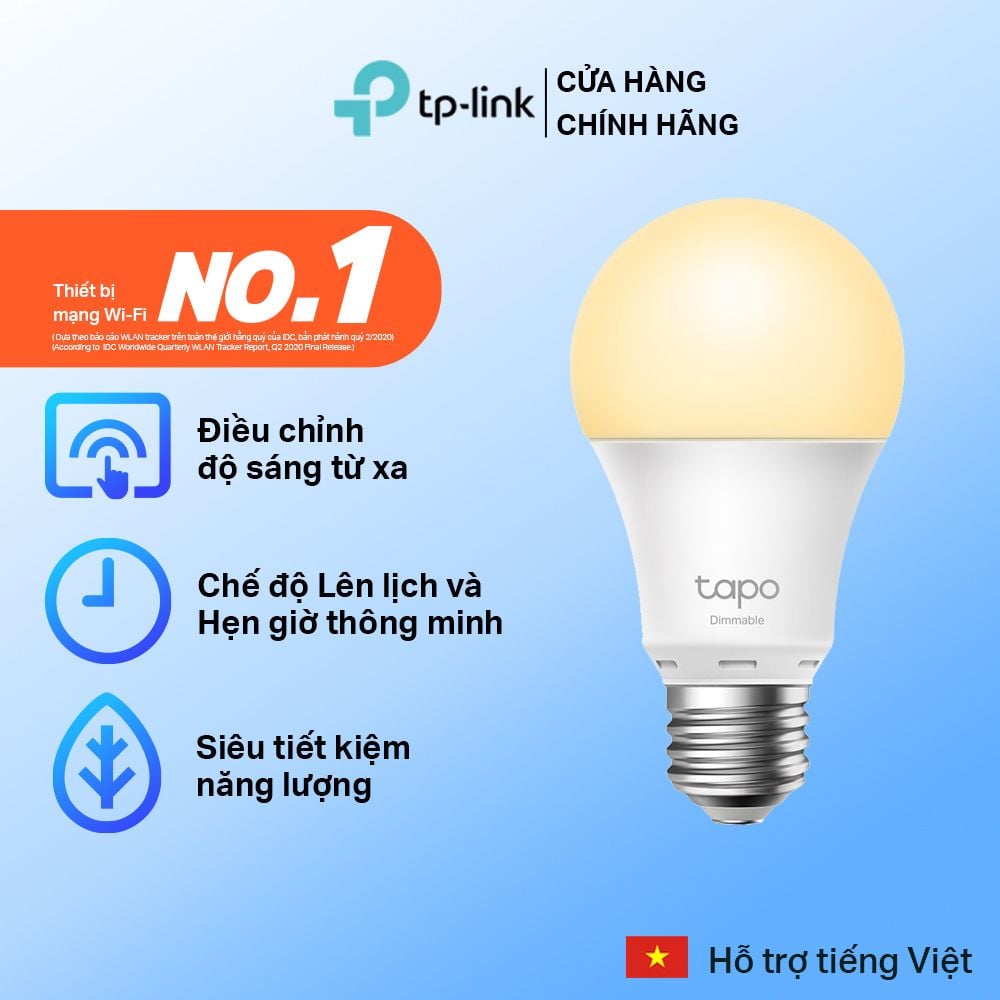 📌 TÍNH NĂNG NỔI BẬT: - Thương hiệu: TP-Link - Xuất xứ: China - Kích thước ( C X R X D ): 115 × 60 mm - Chuôi đèn: E27 - Công suất đèn: 8.7 W - Quang thông: 806 Lumen - Tapo L510E nhiệt độ màu 2700K với ánh sáng vàng ấm. - Tapo L520E nhiệt độ màu lên đến 4000K tương tự ánh sáng ban ngày tạo sự thoải mái, làm các vật thể sống động chân thực - Điều Chỉnh Ánh Sáng (Tùy chỉnh dễ dàng) – Quản lý ánh sáng trong tầm tay bạn để tạo ra bầu không khí hoàn hảo trong nhà bạn mọi lúc - Điều Chỉnh Ánh Sáng (Đặt trước giúp thuận tiện hơn) – Bạn đã tìm thấy ánh sáng yêu thích để xem phim? Lưu nó dưới dạng cài đặt mà bạn có thể chỉ cần chọn cho các đêm chiếu phim trong tương lai - Lên Lịch (Đặt Thời Gian Của Bạn) – Tạo lịch mở/tắt thường xuyên với ánh sáng bạn đã cài đặt - Lên Lịch (Chế Độ Ngày và Đêm) – Tự động kích hoạt ánh sáng theo múi giờ của bạn - Điều Khiển Bằng Giọng Nói – Quản lý đèn bằng lệnh thoại của bạn, Tapo hoạt động với Amazon Alexa và Trợ lý Google - Điều Khiển Từ Xa – Lấy điện thoại ra khỏi túi và mở ứng dụng Tapo để điều khiển đèn từ xa - Chế Độ Vắng Mặt – Tự động mô phỏng một người nào đó đang ở nhà để những vị khách không mong muốn luôn tránh xa nhà bạn .
