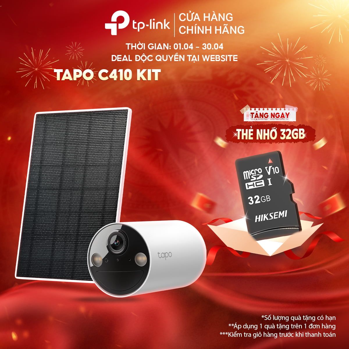 - Tapo C410 KIT bao gồm tấm năng lượng mặt trời, Tapo C410 không đi kèm.